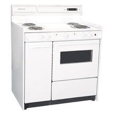 Brown’s WEM430-KW 36″ Electric Range comes in a clean white finish with a porcelain top, an ADA compliant porcelain control panel with up front controls, a high backguard and a built-in clock timer. This range has three 6″ 1200W coil elements and one 8″ 2100W coil element as well as both a bake and broil element. It has 1 oven and 1 surface indicator light as well as an oven door window and interior light. It also has built-in storage for pots and pans to help save space elsewhere in the kitchen.1 oven and 1 surface indicator lightOven door window and interior lightBuilt-in clock timerBuilt-in storageHeight 44.00Width 36.00Depth 24.00Weight 165.00Color WhiteOperating SystemBatteries IncludedBatteries RequiredNumber of BatteriesBattery TypeLanguage EnglishAssembly RequiredWEM430KW 36″ Electric Range with Electronic Clock, Oven Window and Light